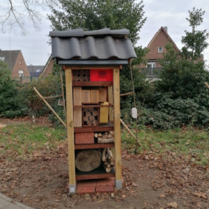 Präsentation unseres Aktionsnachmittags Nachdem unser Insektenhotel Ende des Jahres fertiggestellt werden konnte und seinen Namen ,,Zur wilden Biene“ erhalten hatte, gingen die Kinder des Aktionsnachmittages