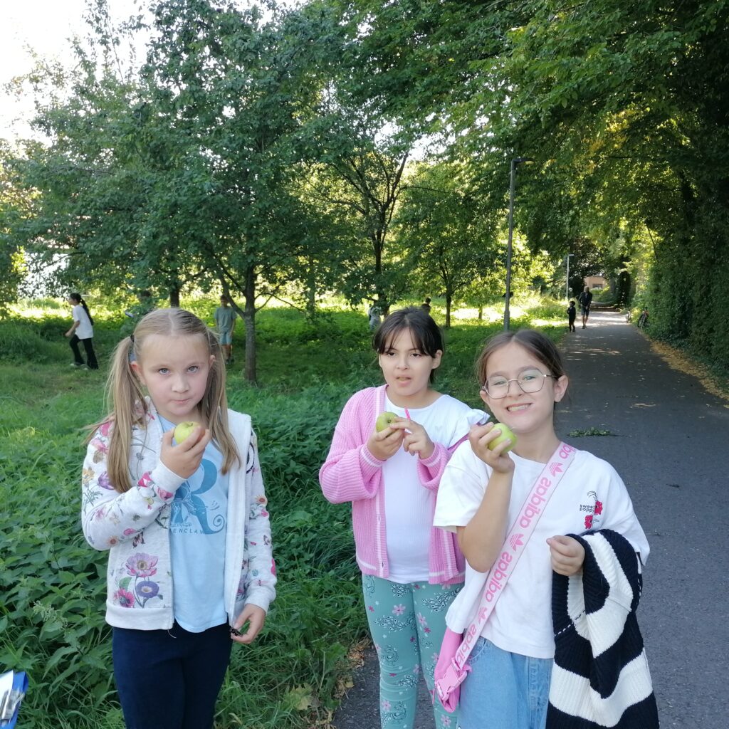 Einige Kinder wussten bereits um einige nahegelegene Streuobstwiesen und berichteten, dass sie diese schon mehrfach aufgesucht und dort Obst geerntet hätten.