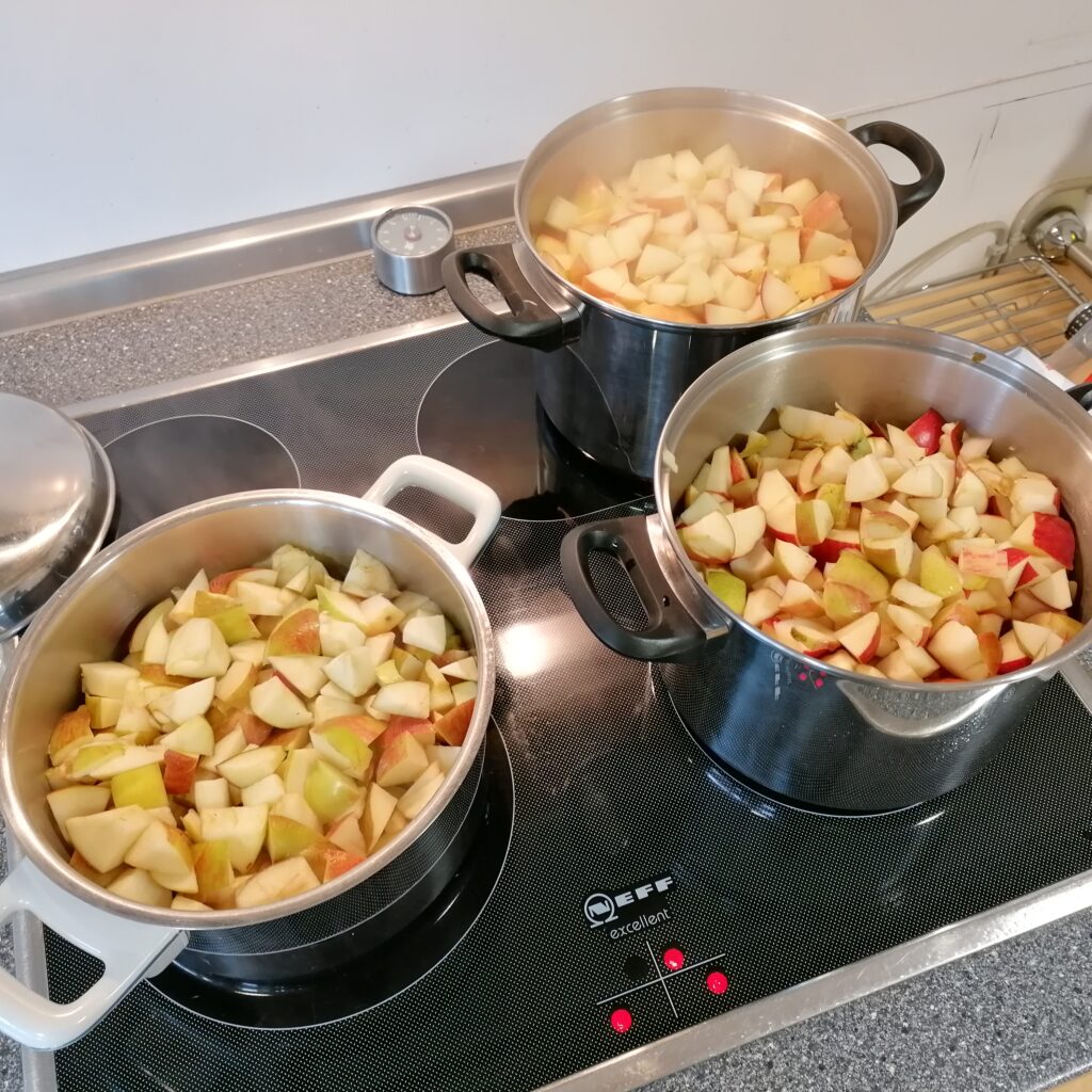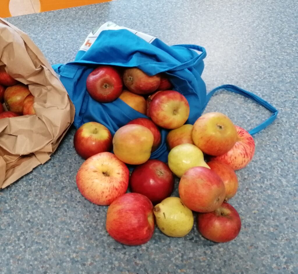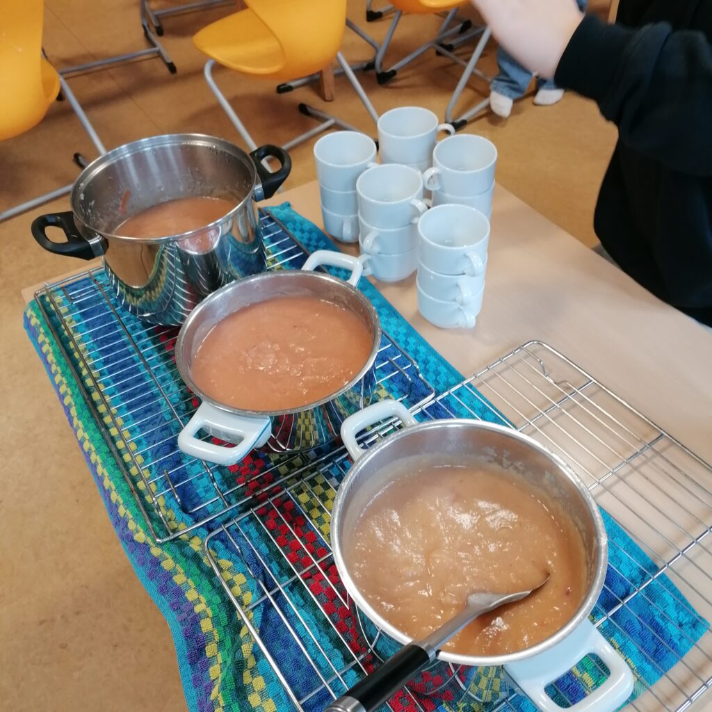 Und während eine Klasse aus den verschiedenen Apfel- und Birnensorten leckeres Apfel-Birnen-Mus herstellte…