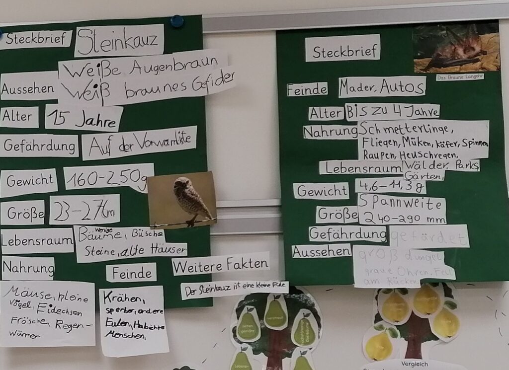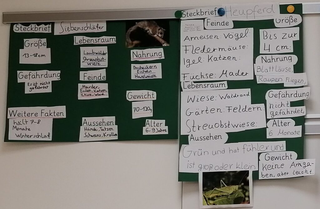 Hierzu haben die Kinder Steckbriefe erstellt und präsentiert.