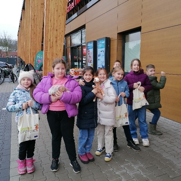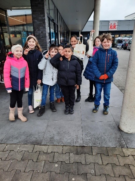 Und so machten sich einige Klassen freitags auf den Weg, um in den nahegelegenen Supermärkten einzukaufen. Dabei schauten die Kinder nicht nur auf die Herkunft der Lebensmittel. Vorab wurde auch über die klimaschonende Verwendung von Baumwolltaschen gesprochen.