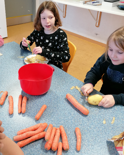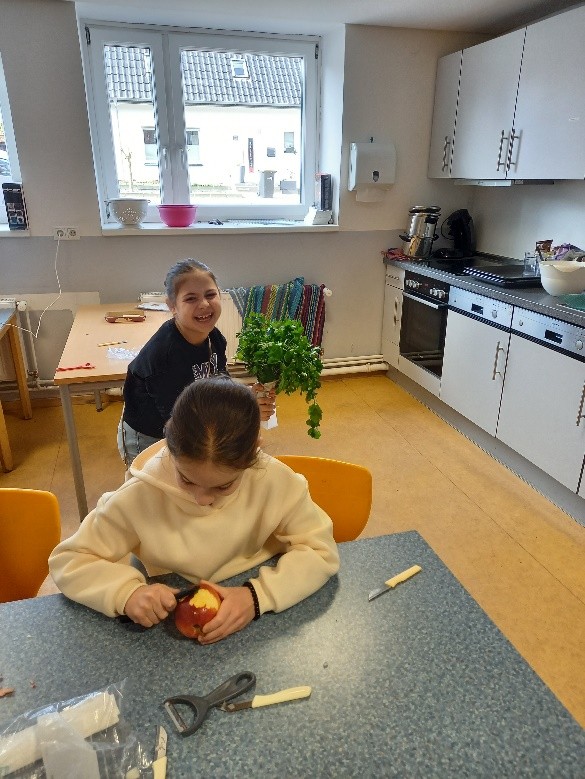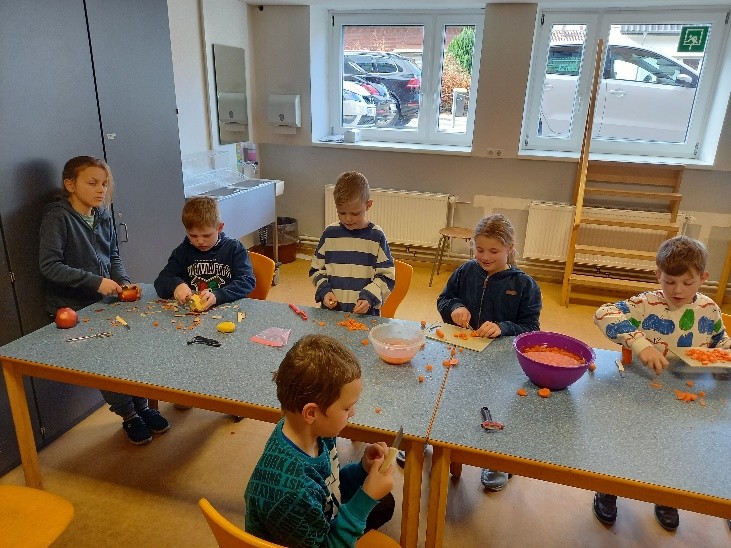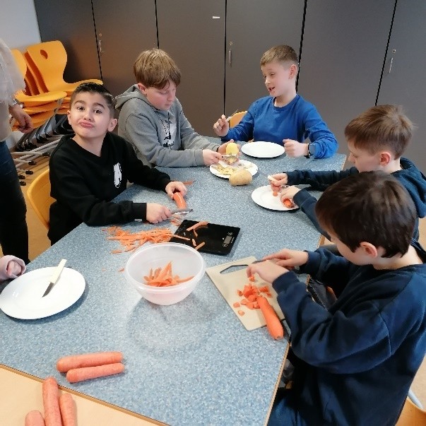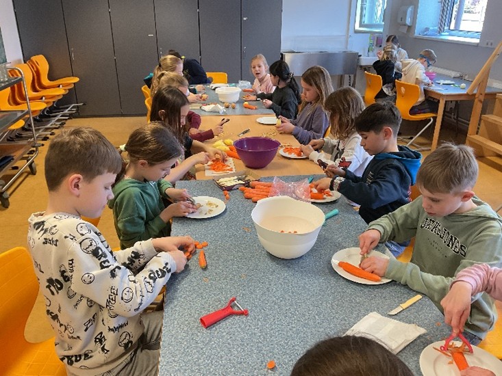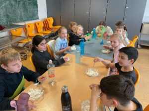 Für die Nachspeise bereiteten die Kinder eine vegane und eine vegetarische Variante zu und die Kinder haben beide Varianten probiert.