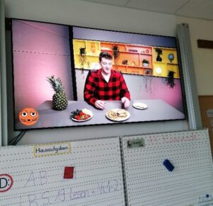 Die Sachunterrichtsstunden wurden genutzt, um mit den Kindern ihr Vorwissen vom Klimafrühstück zu dem Thema zu reaktivieren und mit ihnen den Zusammenhang von Essen und Klima zu vertiefen. Anregungen dazu fanden sich bei der hierzu erstellten Edumaps, wo Materialsammlungen und die Wissenskarteien, veranschaulichende Videos, ein Saisonkalender für Obst und Gemüse und Rezepte hinterlegt wurden. Im Lesebuch gab es parallel dazu Seiten, die sich mit dem Thema „Essen“ u.a. mit dem Wegwerfen von Essen befassen.