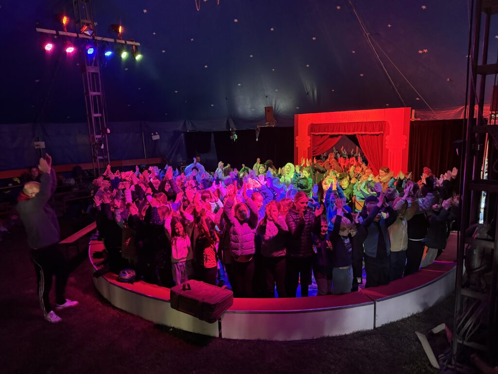 Auch am Zirkusmittwoch wurden alle kleinen und großen Artisten im Zirkuszelt begrüßt. Nach einer kleinen Ansprache ging es direkt in die gemeinsame Übungsphase – den Abschluss der Show. Alle Artistinnen und Artisten durften durch den Backstage-Bereich in die Manege und sich für die geleistete Arbeit feiern. Auch wenn viele Kinder vorher noch zweifelten, ob auch alle in die Manege passen – es passte!