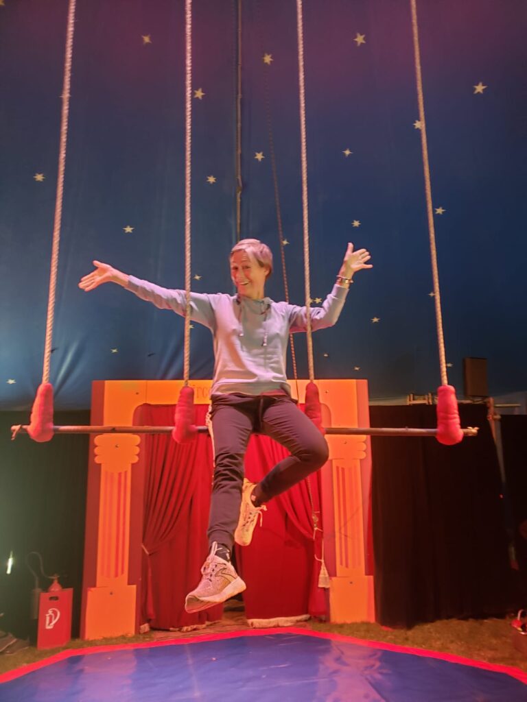 Ein Highlight des Zirkusmittwochs: Unsere liebe Frau Vogelsang durfte heute endlich wieder fliegen und Platz auf dem Trapez nehmen 🙂